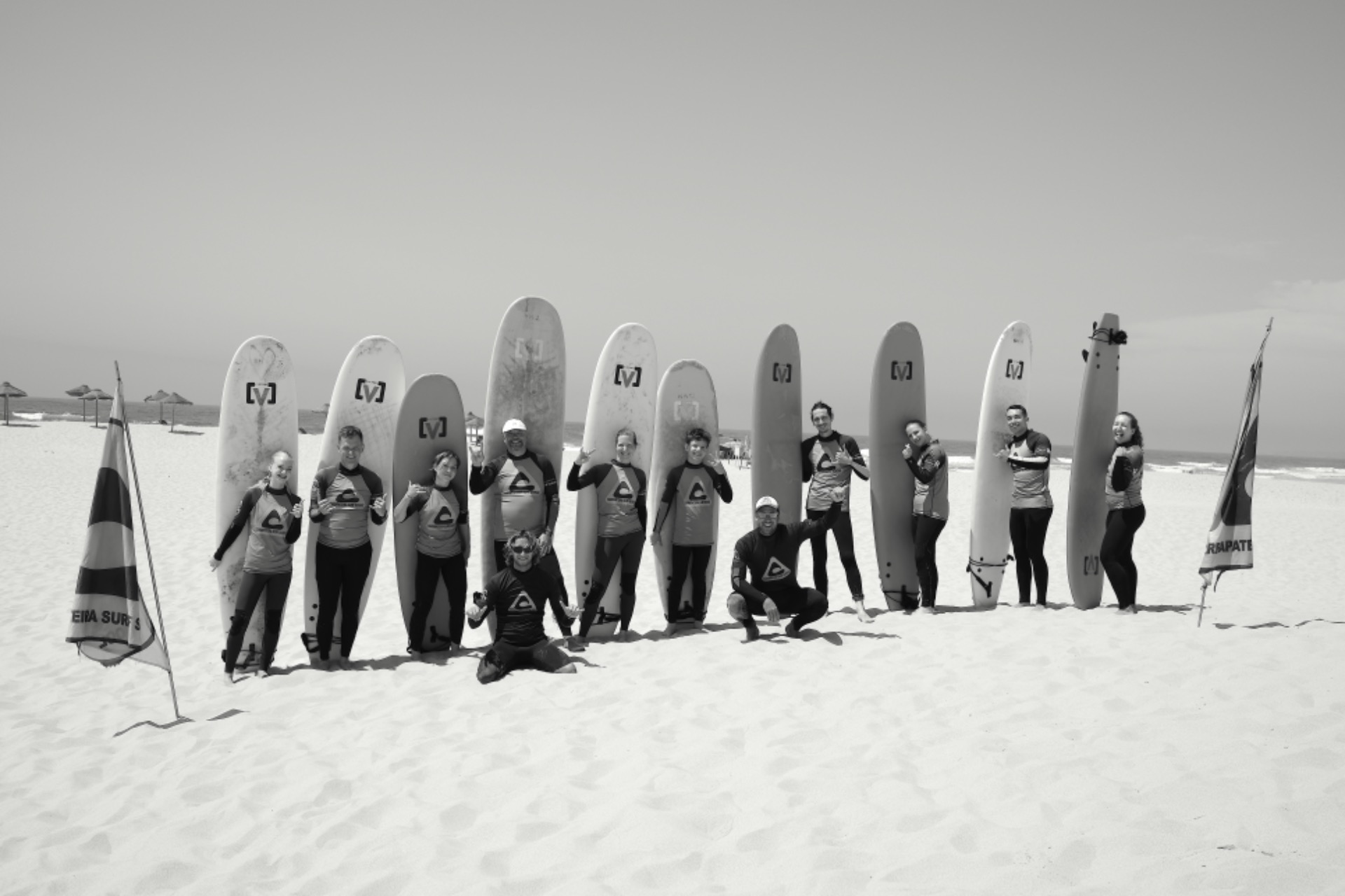 Surf equipment is available directly on the beach at the surf school itself, for greater comfort and convenience. Boards, wetsuits, and accessories are selected according to each person's experience and needs, ensuring the best possible experience in every session.